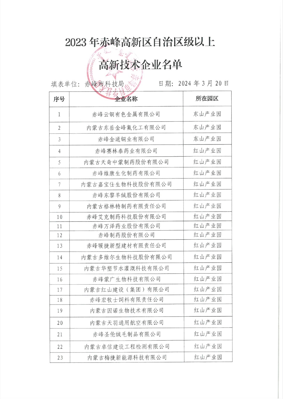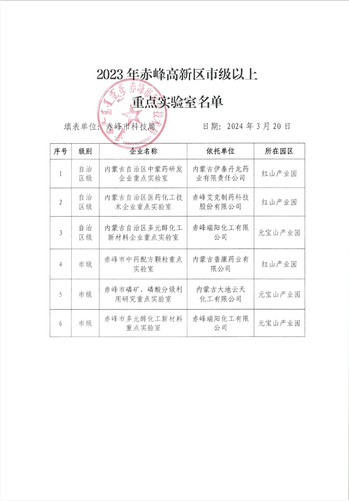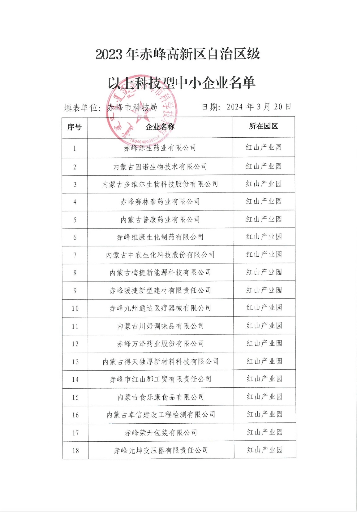 赤峰高新区高新技术企业、科技型中小企业、重点实验室名单